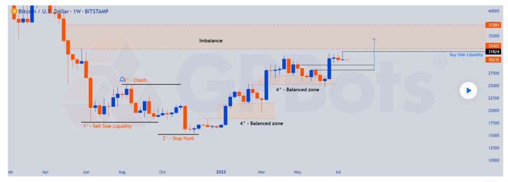 Amidst this upward movement, the market may face resistance, leading to a potential correction in the bullish momentum that started in November 2022. The analysts commit to closely monitoring both the HTF and the MTF (medium timeframe) to provide detailed and nuanced market descriptions based on institutional analysis.